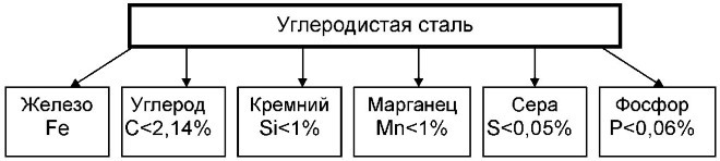 The content of various chemical elements in carbon steel alloys is indicated in the image below: