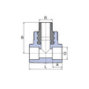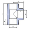 The dimensions of the T-piece with female thread are indicated in the table below.