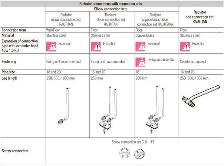 | 1. Radiator elbow connection set RAUTITAN -made of stainless steel -made of copper |