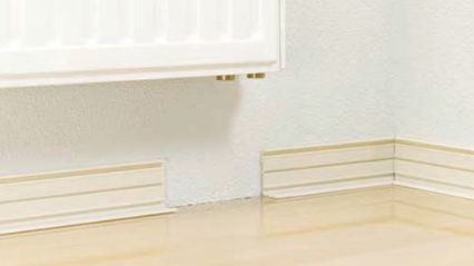 1. At the radiator connection, notch out the cover with the notching pliers in a semicircle for the skirting connection set RAUTITAN.