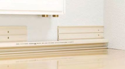 For the skirting trunking RAUSOLO, do not lay a base at the skirting connection set RAUTITAN (see image below). Length of the cut-out: Approx. 170 mm.
