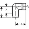 Переход угловой 90° Geberit Mapress (углер ст), оцинкованный, пресс/наружная резьба BSP, R - 1/2'', d - 15 [Артикул: 21613]