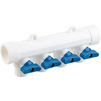 Коллектор РТП ALPHA PP-R, d - 32, d1 - 20, с шаровым краном, синие вентили, 4 выхода, белый [Артикул: 28204]