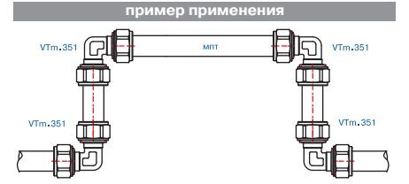 - Для соединения двух металлополимерных (металлопластиковых) труб под углом 90°