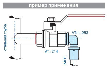 - Для соединения под углом 90° друг к другу полипропиленового трубопровода и компонента инженерной системы с резьбовым подключением