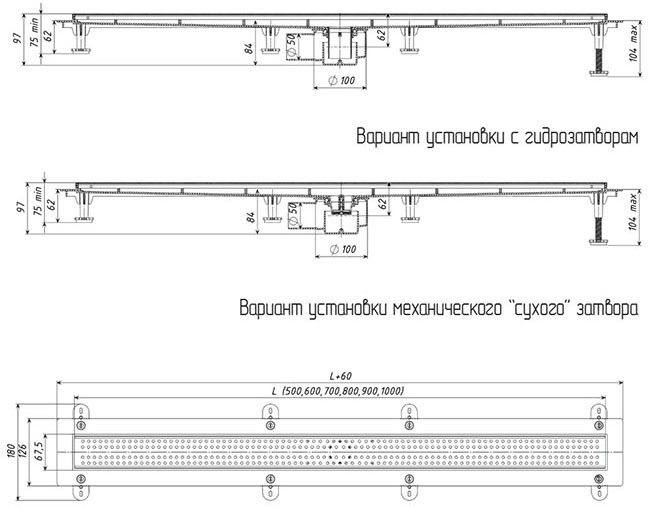 - решетка изготовлена из нержавеющей стали, корпус - из ABS-пластика, сифон - из ПП, рамка из нержавеющей стали;